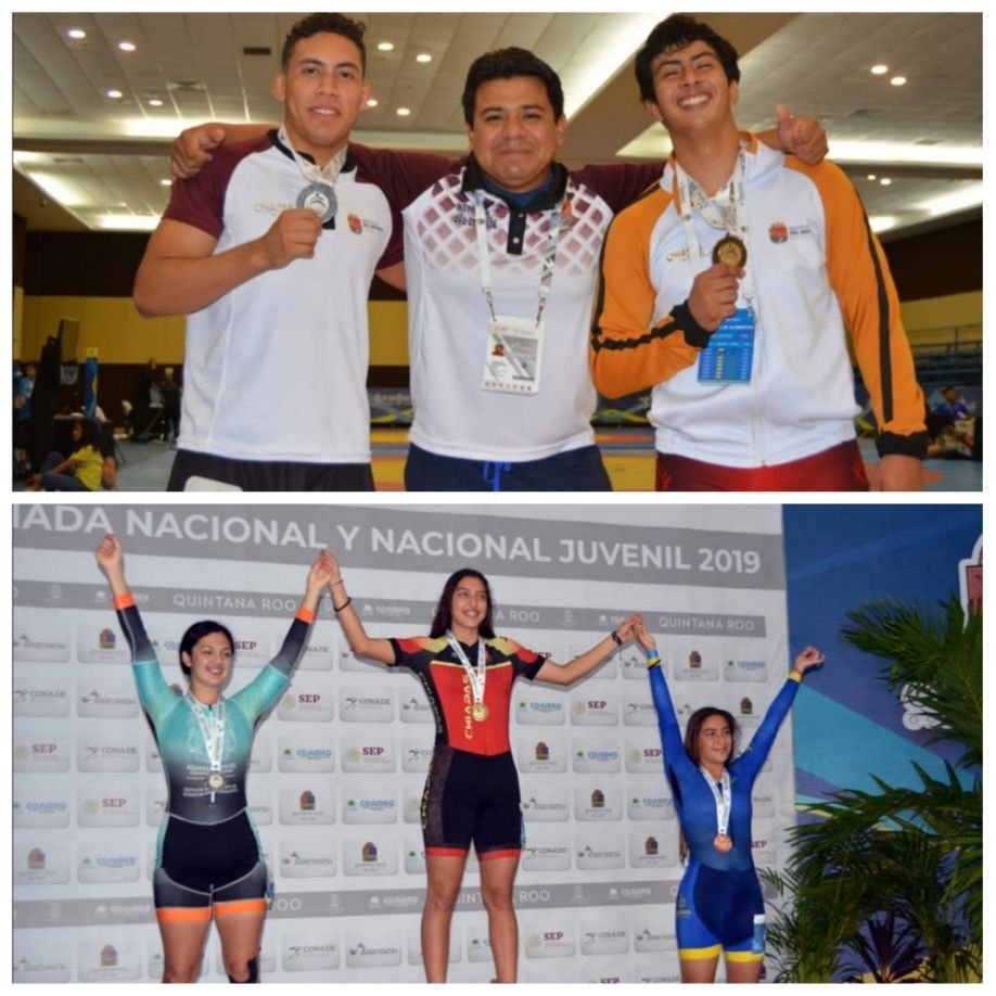 Mientras que en el rubro de entrenador (a), son: en Judo, Luis Alberto Olmo Pacheco; en Luchas Asociadas, Quintín Gerardo Vázquez López y José Candelario Chávez Banda; en Natación, Amanda Moguel Rodríguez; en Patines Sobre Ruedas, Adanaeth Yadira Figueroa Pérez; en Tae Kwon Do, Williams Enrique de León Molina, Glimmer Geovanny de León Molina y Juan Pablo Arias; en Tenis, Raymundo Chávez Ledesma y Alfredo Magín Penagos Morán; y en Tiro Deportivo, Josué Alejandro Meneses Garibay.