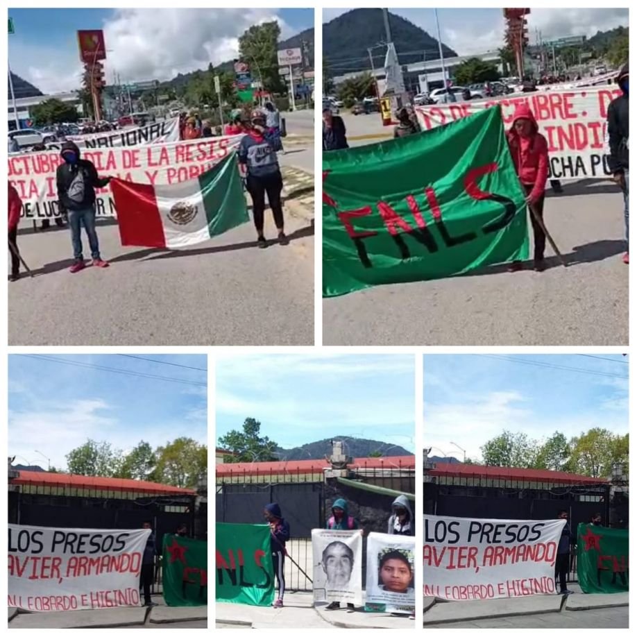 Integrantes del Frente Nacional de Lucha por el Socialismo (FNLS), realizaron un mitin político de protesta frente al cuartel militar ubicado en la Prolongación Insurgentes en el barrio de los Pinos, en San Cristobal de Las Casas y posteriormente marcharon por las principales calles de la ciudad, la mañana de este martes.