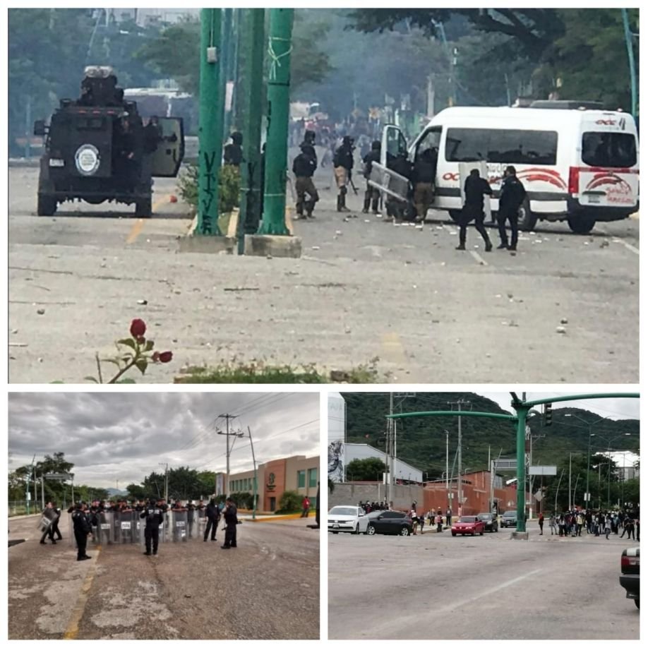 Con el objetivo de restablecer el Estado de derecho, elementos estatales desalojaron a normalistas que emprendieron actos violentos durante su manifestación