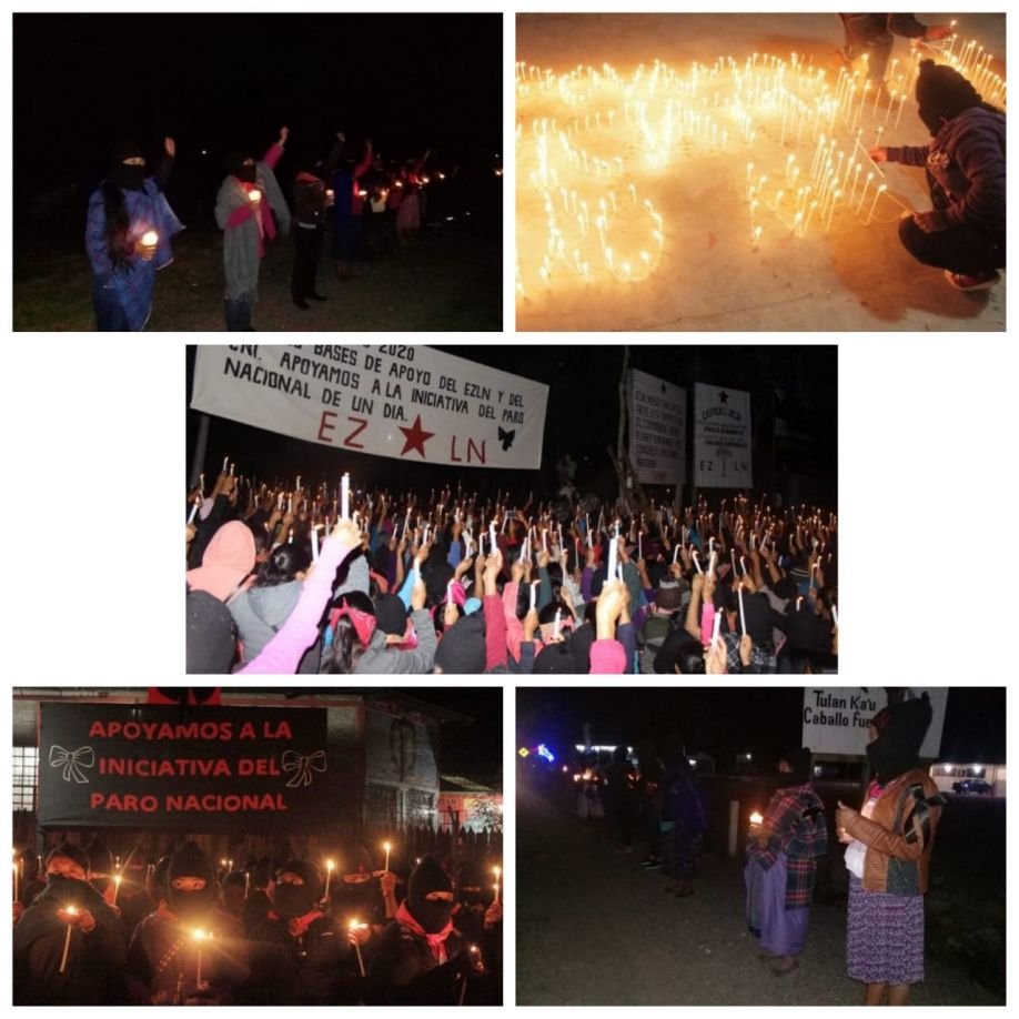 Con velas y veladoras prendidas, en todos los caracoles del EZLN, así como en las bases de apoyo, se unieron al paro nacional para demostrar que las mujeres también valen y mandan, “estamos aquí desde anoche es para protestar en memoria de las mujeres asesinadas en México y en el mundo”.