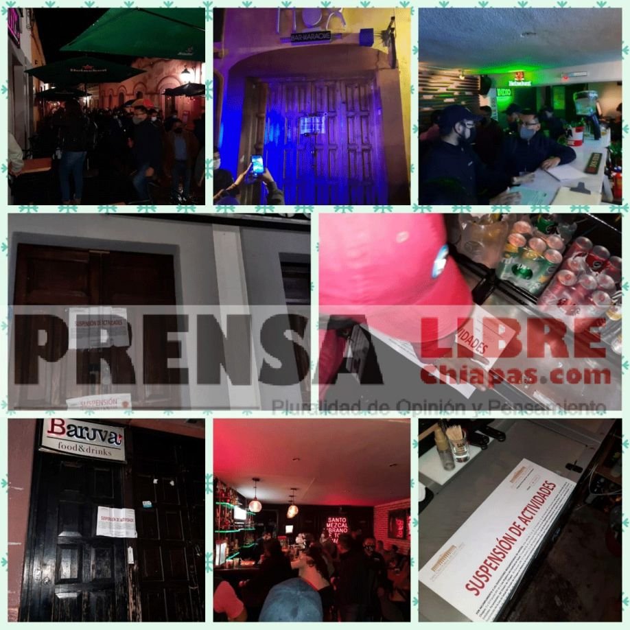 Como resultado de los trabajos realizados, se procedió a colocar sellos de suspensión de actividades al bar denominado "Santitos", por no contar con permisos de funcionamiento. Del mismo modo, se suspendieron trabajo y actividades de los establecimientos "Nox" y "Baruva", por incurrir en faltas administrativas al funcionar fuera del horario permitido.