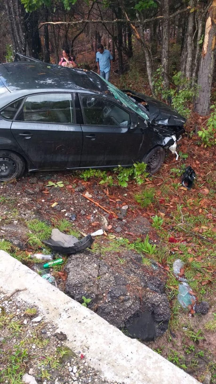 Testigos que presenciaron el accidente informaron que un vehículo color gris se salió de la carretera y volcó resultando lesionado el conductor pero éste fue trasladado en un vehículo particular a un nosocomio de la ciudad de San Cristóbal de Las Casas.
