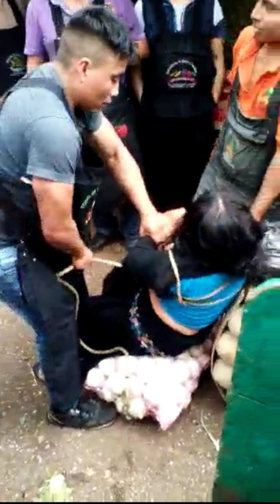 Una mujer indígena fue detenida, amarrada y lanzada a un canal de aguas negras en el Mercado Popular del Sur, (Merposur), la tarde de este martes en San Cristóbal de Las Casas.