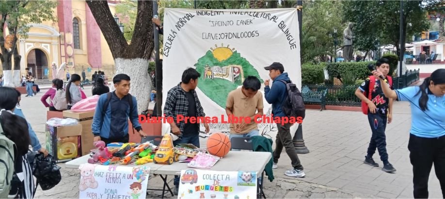 San Cristóbal de Las Casas, Chiapas.- En el marco de la celebración del Día de la Niña y el Niño en México, estudiantes de la Escuela Normal Intercultural Bilingüe Jacinto Canek, del municipio de Zinacantán, realizaron una colecta de juguetes en San Cristóbal de Las Casas con el objetivo de llevar alegría a menores de comunidades de la región Altos de Chiapas.