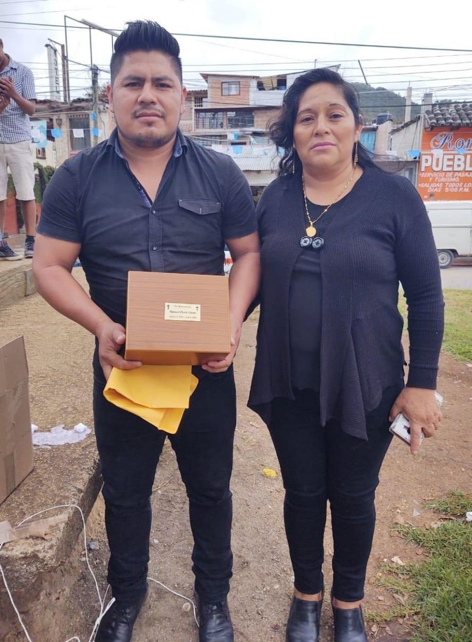 Nicolás y María Pérez Hernández, hijos de don Manuel, recibieron las cenizas de su padre la tarde de este domingo en San Cristóbal de Las Casas, por lo que agradecieron al consulado mexicano el apoyo para el traslado de las cenizas de su difunto padre.