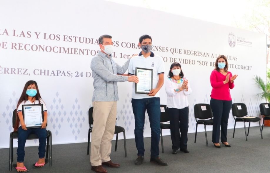 Desde las instalaciones del Cobach 33 en Tuxtla Gutiérrez, el gobernador Rutilio Escandón Cadenas mencionó que la resiliencia acompañará a lo largo de su vida a quien la practique, por ello, dijo que no se dejará de desarrollar este tipo actividades que ayuden a la niñez y juventud a enfrentar distintas situaciones, y felicitó a quienes participaron en este concurso mostrando su talento para llevar un mensaje positivo a sus compañeras y compañeros.