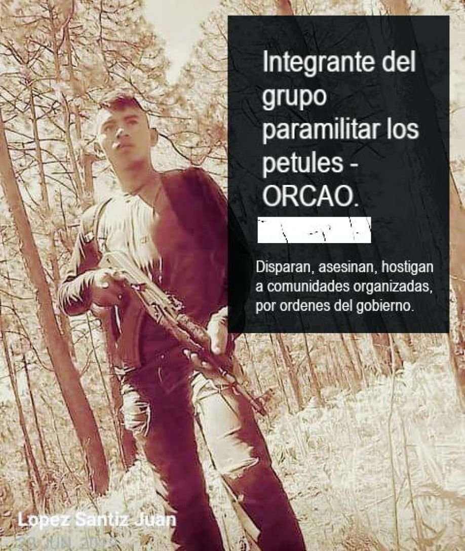 A través de un escrito señalaron que en el año 2020 los Petules retuvieron en su campamento paramilitar a tres de sus compañeros, Carlos López Gómez, Angelina Sántiz López y Enríque Armando Herrera Jiménez, “ahí fueron torturados y amenazados con asesinarlos, nuestros compañeros fueron liberados días después pero muy golpeados”.