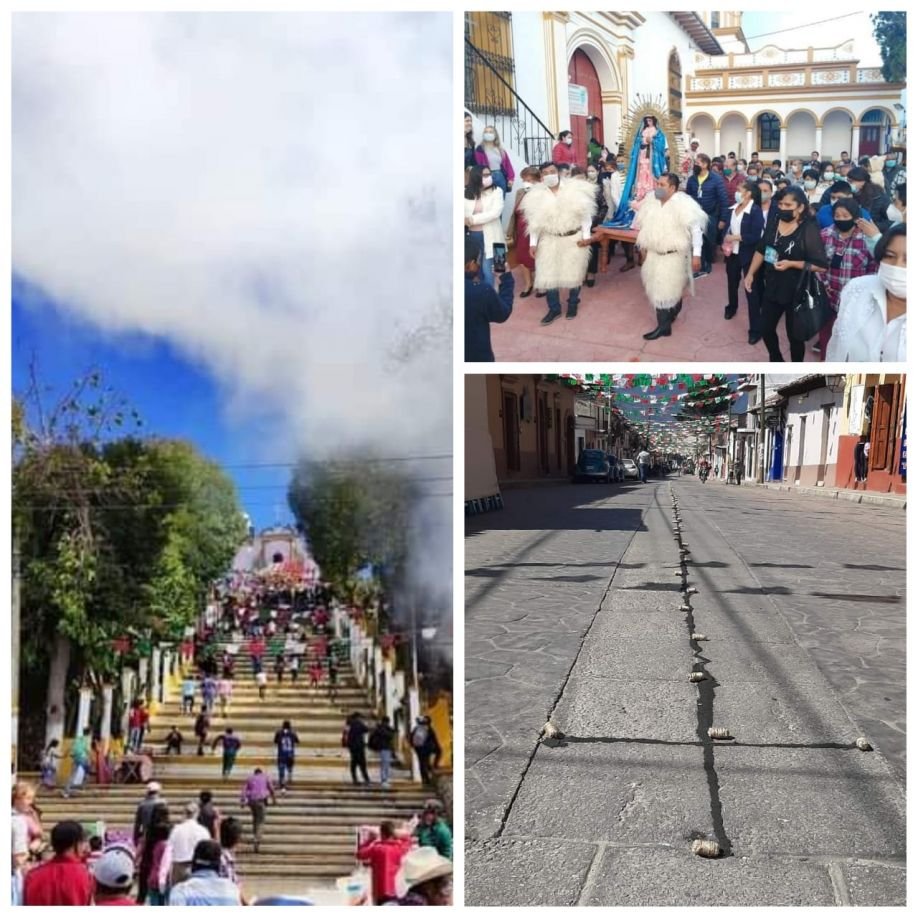 La mañana de martes se realizó el tradicional descargue de bombas y cohetes por la calle Real de Guadalupe como anuncio de la fiesta grande de la virgen de Guadalupe, en San Cristóbal de Las Casas.