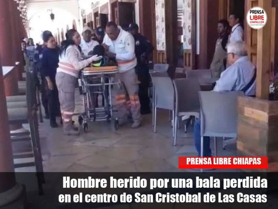 Una persona del sexo masculino de 33 años de edad, fue alcanzado por una bala pérdida, mientras caminaba por una de las aceras del primer cuadro de la ciudad de San Cristóbal de Las Casas.