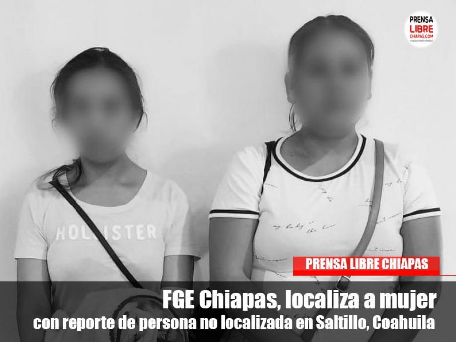 FGE Chiapas, localiza a mujer con reporte de persona no localizada en Saltillo, Coahuila