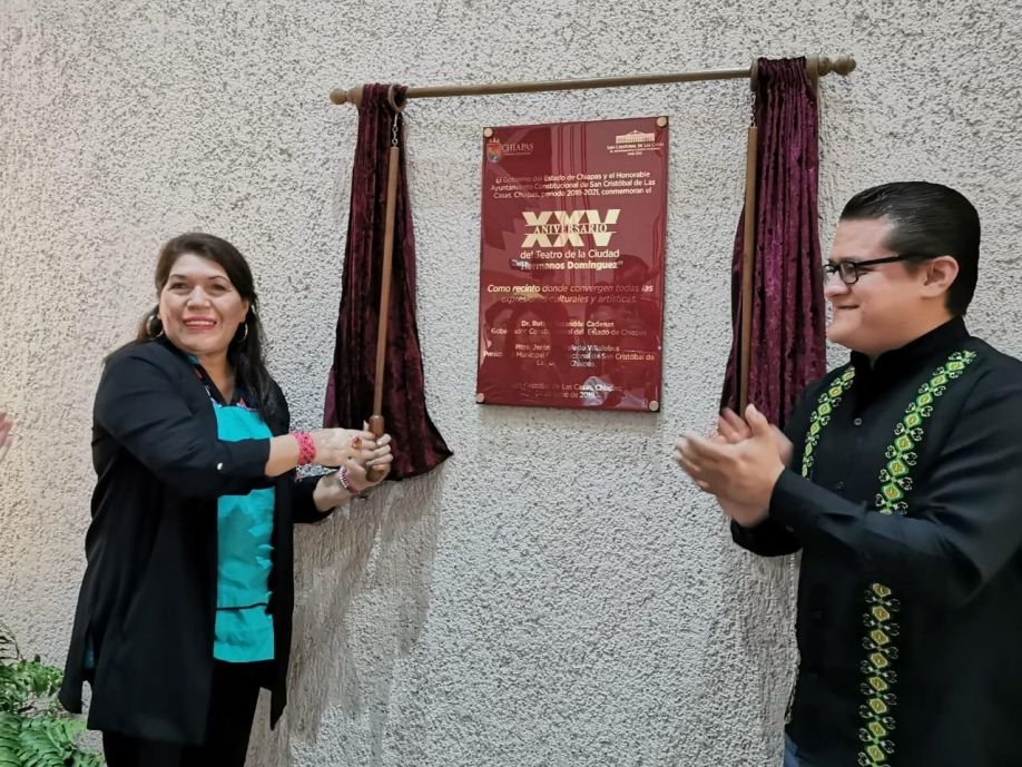 La presidenta municipal, Jerónima Toledo Villalobos, develó la placa conmemorativa del XXV Aniversario del Teatro de la Ciudad "Hermanos Domínguez ", recinto construido bajo el diseño y la supervisión del arquitecto Gerardo Muñoz González e inaugurado el 24 de junio de 1994.