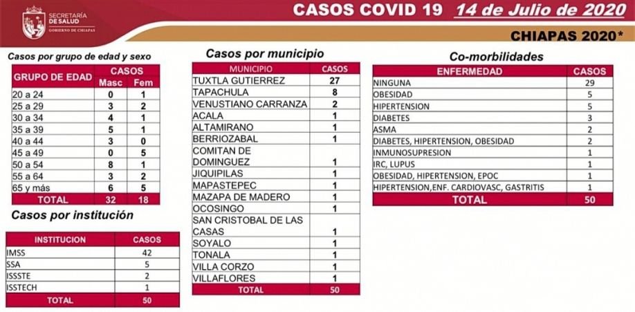 Tuxtla Gutiérrez, Chiapas; 14 de julio de 2020.- La Secretaría de Salud de Chiapas informa que debido a que el semáforo de riesgo epidemiológico para transitar hacia la “Nueva Normalidad” mantiene a la entidad en color rojo, el Gobierno del Estado determinó ampliar la suspensión de labores en la administración pública hasta el próximo 31 de julio, con la finalidad de evitar una mayor propagación del coronavirus COVID-19 y proteger la salud de la población.